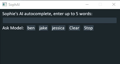 It's a simple app that talks to the SophAI API. The API is a simple API that talks to the AI and returns the the next word in the sequence. The app then shows the output.